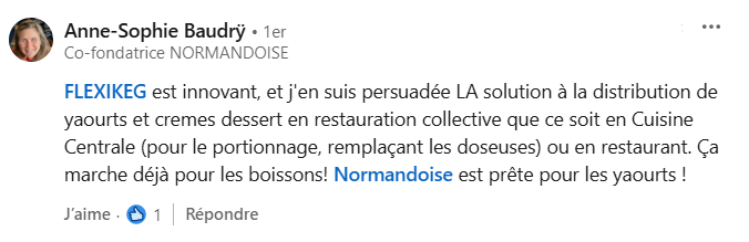 Une portion de yaourt en pot comporte 4 grammes de platique contre 0,8 grammes pour une portion en Flexikeg : soit une diminution par 5 de la quantité de plastique utilisée pour servir vos yaourts. Un chiffre qui prend rapidemment de l’ampleur lorsque vous distribuez en plus grandes quantités et qui ne doit plus être négligé.